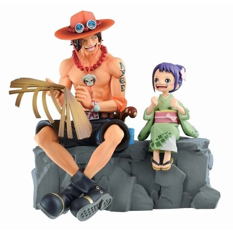 Sur la Figurine Ace Et Otama, les deux personnages se regardent et partagent un instant simple.