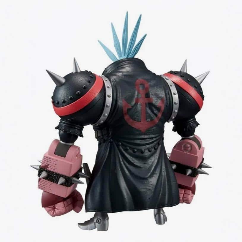 Franky debout dans une tenue noir punk rock donne tout de suite un style marqué, parfait pour les fans qui aiment son côté imposant dans One Piece Film Red.