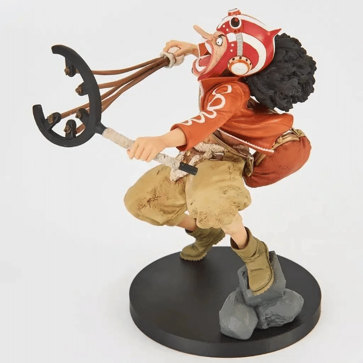 Avec 15 cm de hauteur, La Figurine God Usopp se place facilement sur une étagère et capte immédiatement le regard grâce à sa pose nerveuse et son expression marquée.