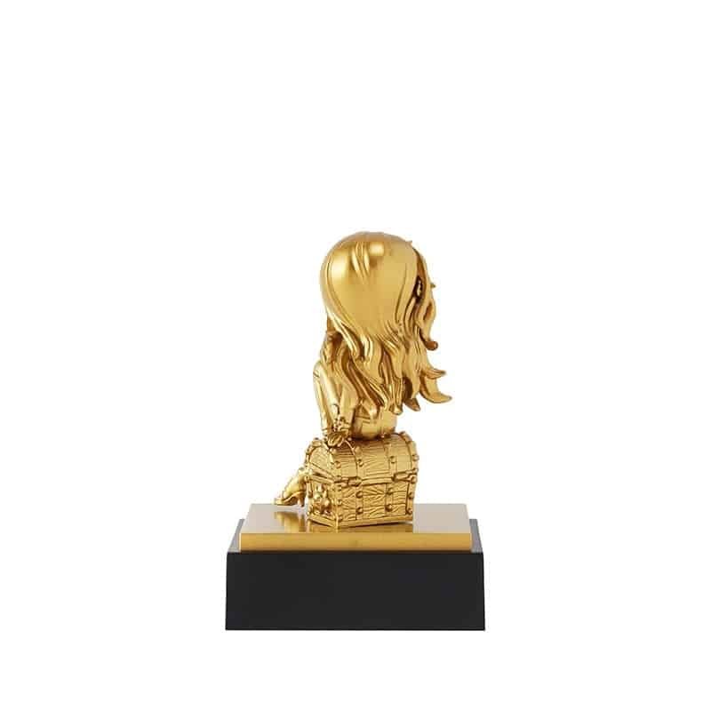 L’effet or recouvre l’ensemble de la figurine, ce qui crée une belle unité visuelle entre le personnage et le décor.