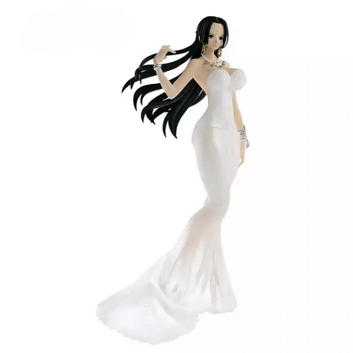 La Figurine One Piece Boa Hancock Robe De Mariée la présente vêtue d’une robe de mariée bustier, avec une longue traîne qui apporte un rendu fluide et raffiné.