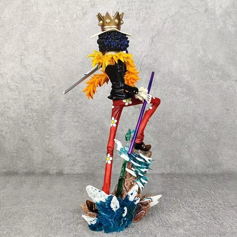 La Figurine One Piece Brook mesure 33 cm, un format imposant qui met en valeur chaque élément de sa tenue et de son équipement.