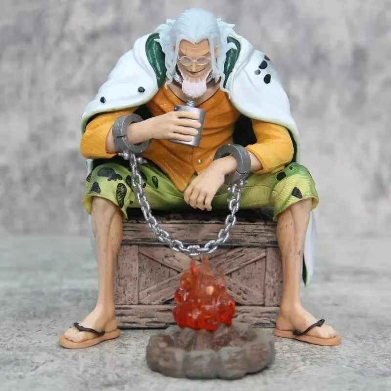 La Figurine One Piece Silvers Rayleigh capte ce moment de repos avec un fort contraste entre les menottes et son attitude sereine.