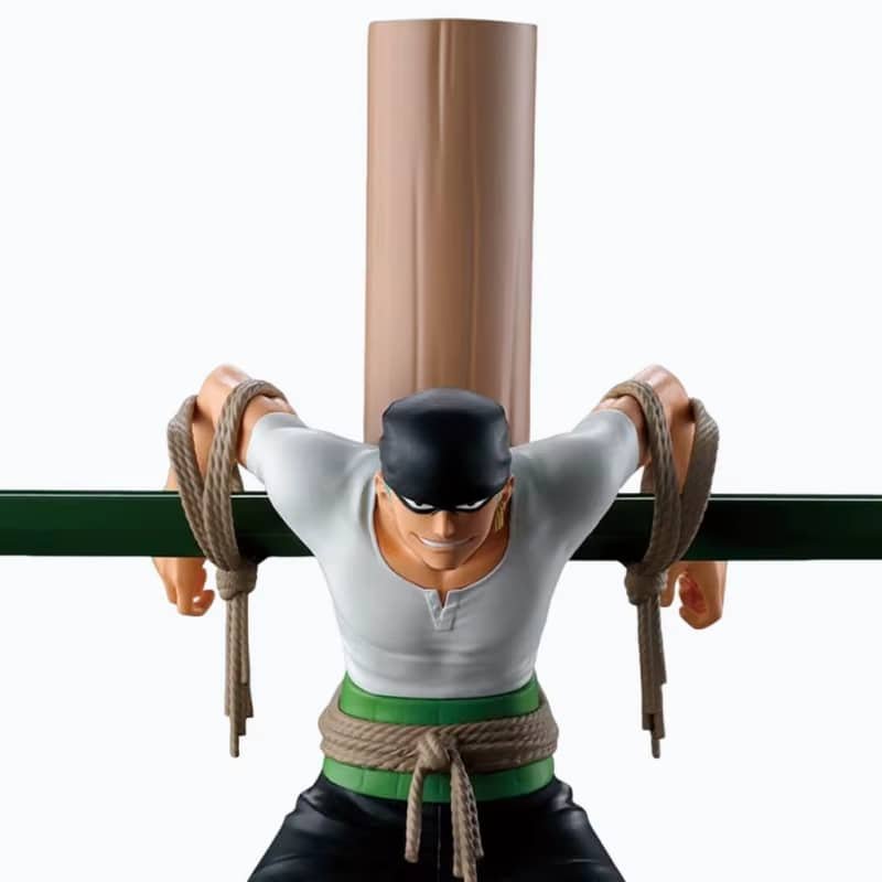 Zoro est attaché à un poteau en punition, une situation marquante que les fans reconnaissent immédiatement.